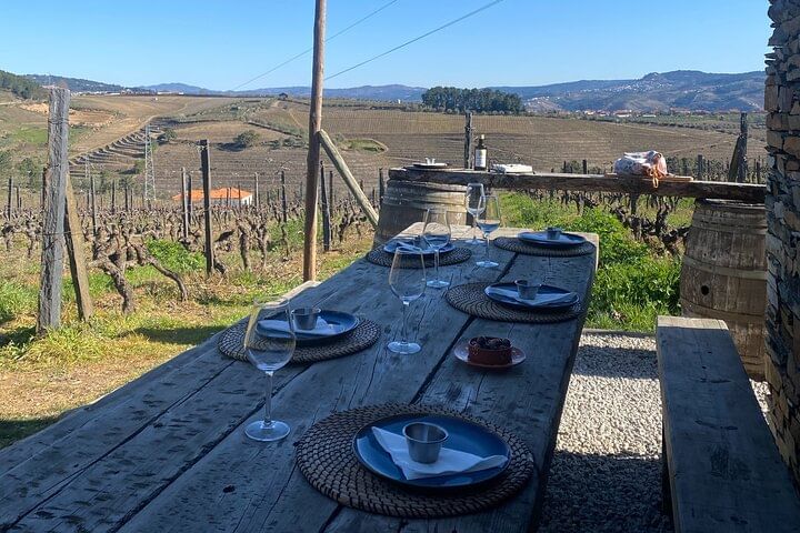 This unforgettable tour begins after lunch, around 2:00 PM — the perfect time to avoid the valley’s intense midday heat (which can soar above 100°F) and skip the busy crowds. We’ll head straight to the heart of the Douro Valley to visit a charming local wine producer, where you’ll taste a carefully selected trio of red, white, and rosé wines, all beautifully paired with fresh bread, olives, artisanal olive oil, and a delightful assortment of regional jams.