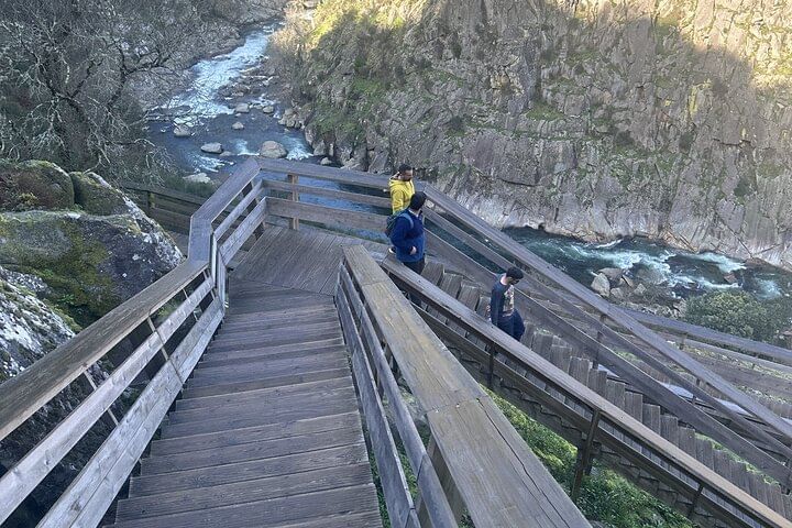 Meet your guide in the morning and hop aboard a climate-controlled bus. Relax on the scenic drive to the Arouca Geopark. Take your time and soak up views of lush greenery and rocky landscapes during a hike on an 8-kilometer-long wooden footpath.